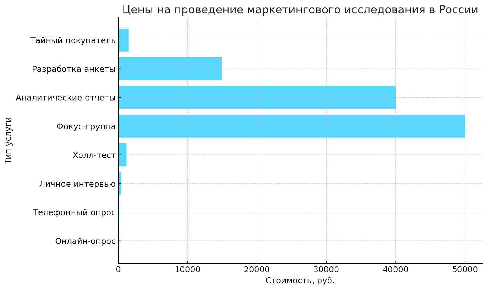 Стоимость проведения маркетинговых исследований в России может значительно варьироваться в зависимости от используемых методов, объёма выборки и специфики исследования. Вот примерные расценки на основные услуги: